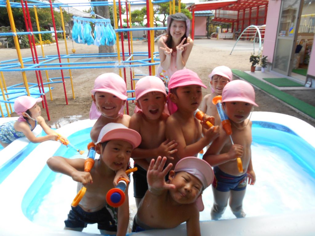 幼稚園のプールに入るのも、今年は最後になりました♥楽しい思い出作ろうね♥