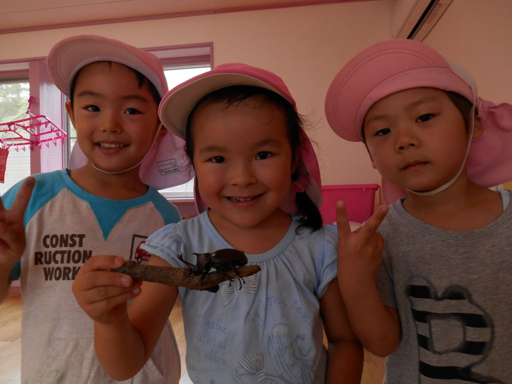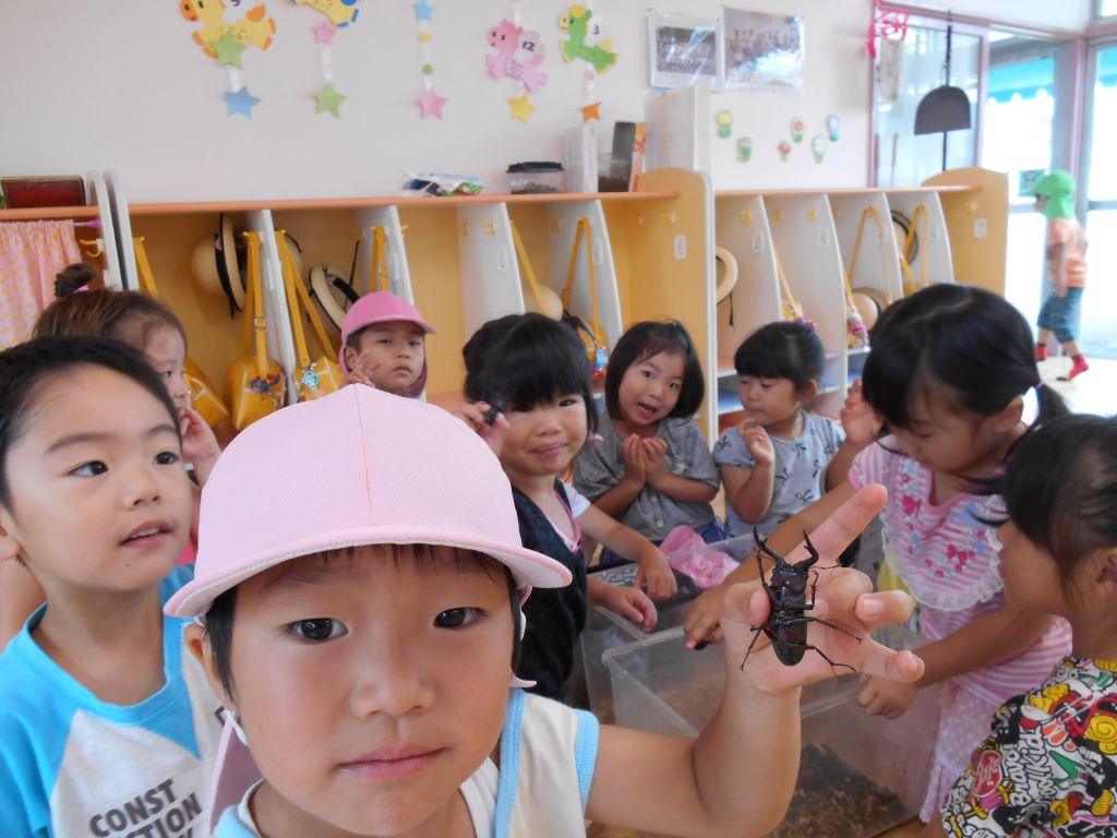 ももぐみさんに来てくれたクワガタくん!始めはちょっぴり怖かったお友だちも、こんなに仲良くなりました♪♪
