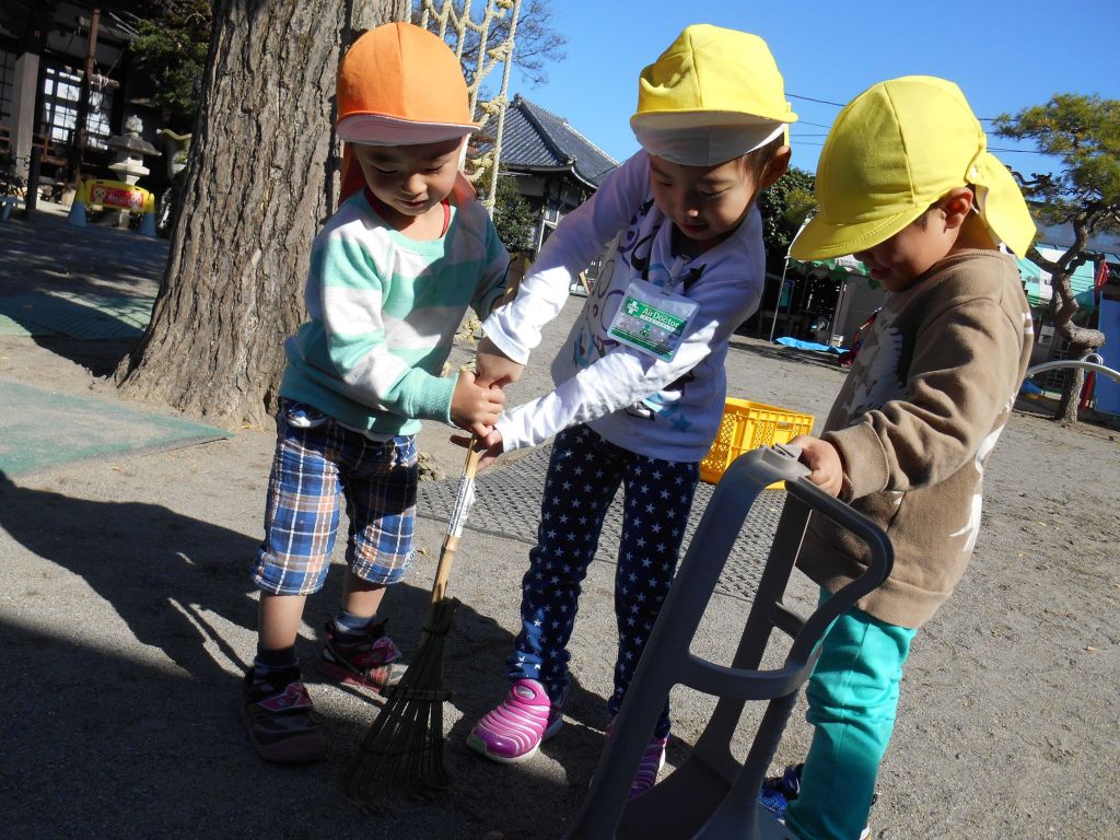 お庭のおそうじを 手伝いまーす!!