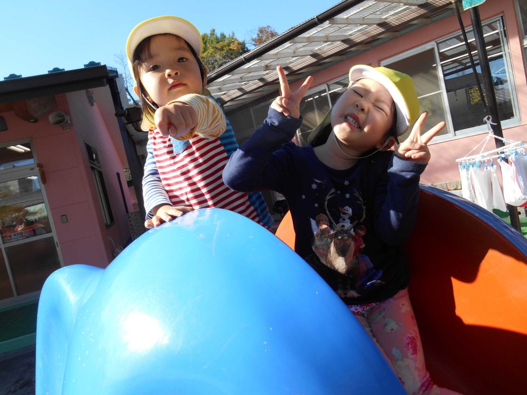 ぞうさん すべり台で ハイポーズ!!