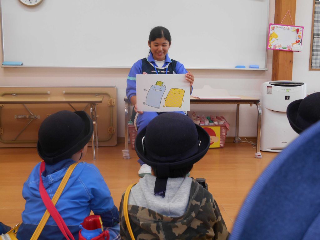 真中 マイチャレンジ体験 お姉さんが紙芝居を読んでくれました。 たのしかったよ!!