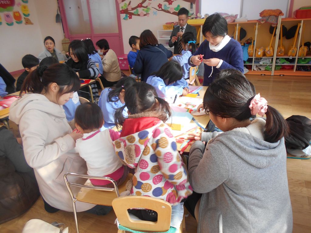 保育参観 親子でおひなさま製作