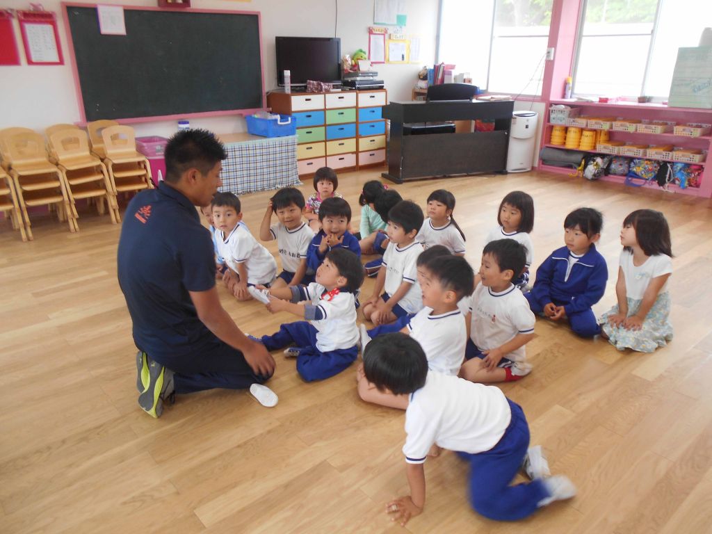 体操指導 大好きな先生のお話をしっかり聞いて頑張ります。
