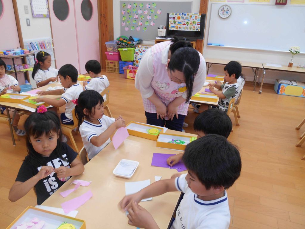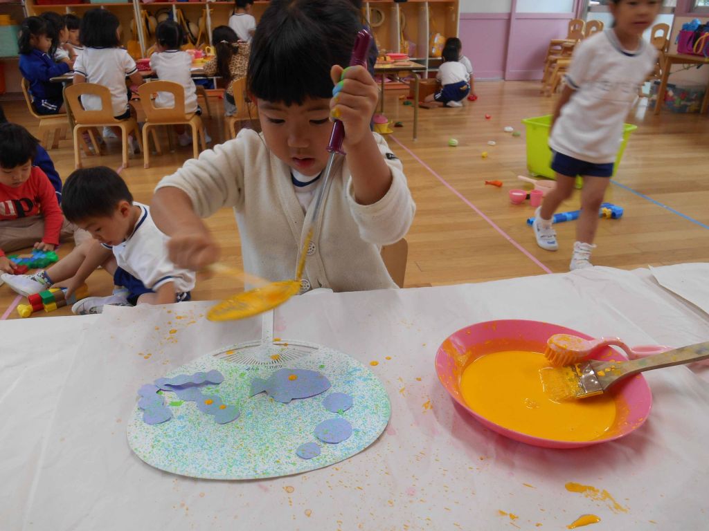 うちわの製作 ブラッシング 海の仲間たち
