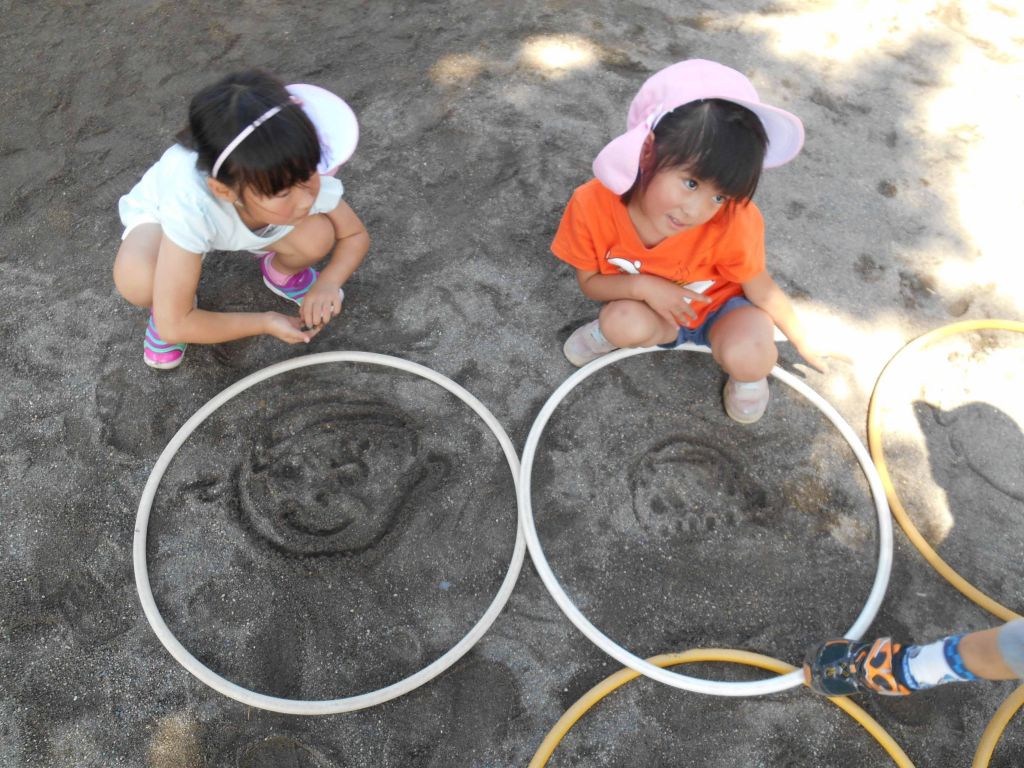 フープの中に お友だちの顔を描いたよ!!